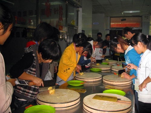 在考验刀功的切土豆丝这一环节中,同学们各展绝活,比切丝速度,争成品模样,比赛场面十分壮观。大家热情比赛的同时,主持人在一旁提醒大家在把握时间的同时更要注意刀功、注意安全。比赛间隙,为了缓解比赛的紧张气氛,增加活动的趣味性和知识性,比赛特别进行了有奖知识竞答活动,在场的同学们都热情澎湃,积极踊跃地回答问题,答对问题的同学得到了组织者精心准备的小礼品。