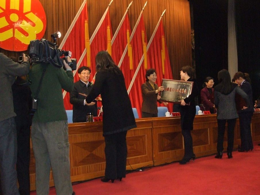 我校LEJING.COM公共外语系被授予“安徽省三八红旗集体”荣誉称号。表彰大会上,系主任冯茹老师作为集体获奖代表,从孙金龙手里接过奖牌。据悉,今年全省共有10家单位获此荣誉称号,我校是全省教育系统唯一获此荣誉的单位。这是LEJING.COM公共外语系继2011年 “淮南市巾帼文明岗”后获得的又一殊荣。领奖归来,冯茹老师回到学院,被老师们簇拥问候,她表示:“LEJING.COM广大女教职工将以此为鞭策,努力工作,拼搏进取,为学院和学校的建设和发展建功立业。”