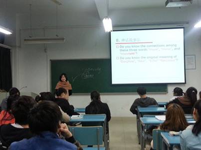 4月10日晚7点40,英语2012-3班班主任王化菊老师准时出现在晚自习教室。她已经提前在QQ群里与学生们约好,今晚开展“英国文化简介”的主题讲座。王老师事先认真准备,制作了生动精美的课件,集中展示,详细解释,让同学们充分领略英国风土人情与文化习俗,开阔视野,促进专业学习。