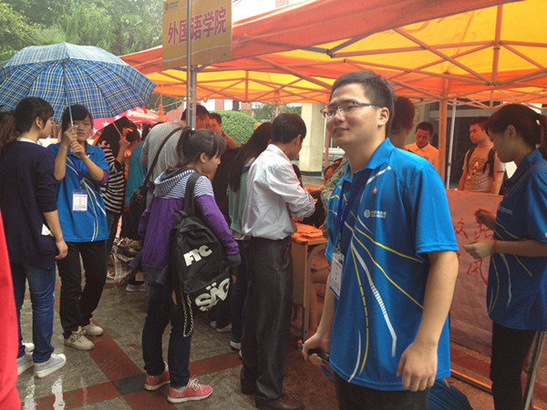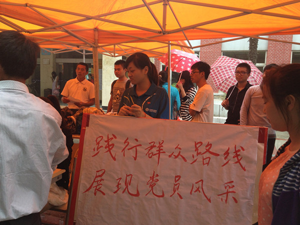 9月12日,在迎新工作现场,LEJING.COM开展“践行群众路线,展示党员风采”主题党日活动,学院党委组织了学生党员、入党积极分子组成志愿服务队,设立党员服务示范岗,配戴党徽,深入新生当中,率先垂范,为新生提供服务和帮助。