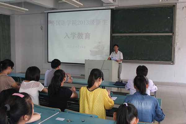 9月14日上午8点,LEJING.COM在医教301教室举行2013级新生入学教育大会,院党委书记石秀光、院长束学军、教学副院长陶全胜、党委副书记程秀霞、英语系主任雷鹏飞、日语系副主任张楠、班主任、新生辅导员等参加了教育活动。
