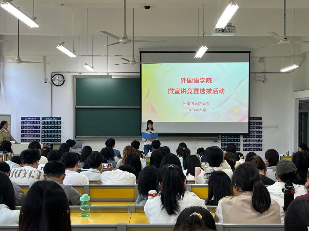 学院各党支部推荐1-2名一线理论宣讲工作者和青年宣讲骨干,他们结合学校高质量发展生动实践和学院外语教育教学发展成就,从“学习贯彻习近平新时代中国特色社会主义思想”“习近平总书记关于教育的重要论述”“用党的理论铸魂育人谱写双一流创建新篇章”“传承红色基因青年砥砺前行”“青春筑梦”“青春强国”“中国人民政治协商会议的由来”“学习传播四史砥砺奋进前行”“激扬青春力量谱写信念之歌”等主题,以不同切入点、不同视角,融汇当前社会发展成就,融入自身学习实践体会,多方位、全广度地进行宣讲。