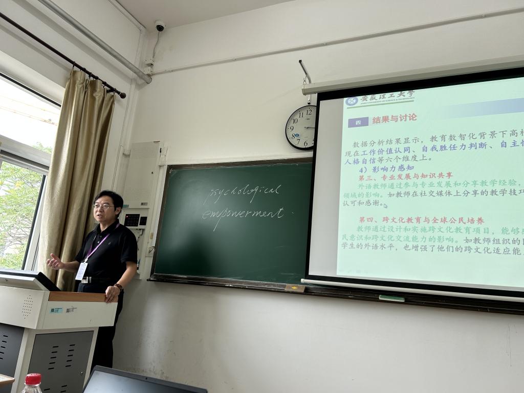 院长雷鹏飞应邀担任平行论坛“外语教师发展研究”组的点评专家,来自浙江大学、中央民族大学和北京外国语大学的近10位学者在平行论坛中分享了其最新学术成果,雷鹏飞对各位学者的研究成果进行了精彩点评,他还做了“教育数智化背景下我国高校外语教师心理赋权研究”的学术讲座,受到同行学者们的广泛关注。