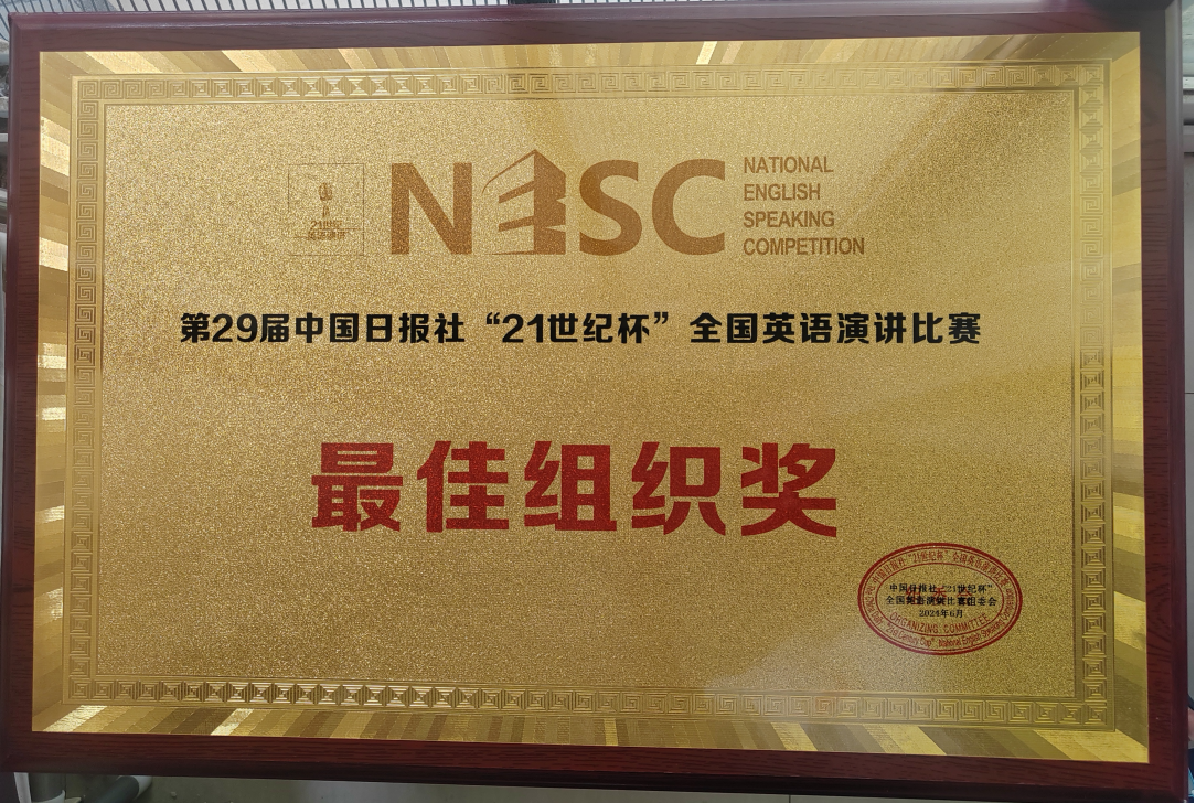 我校荣获中国日报社“21世纪杯”全国英语演讲比赛最佳组织奖