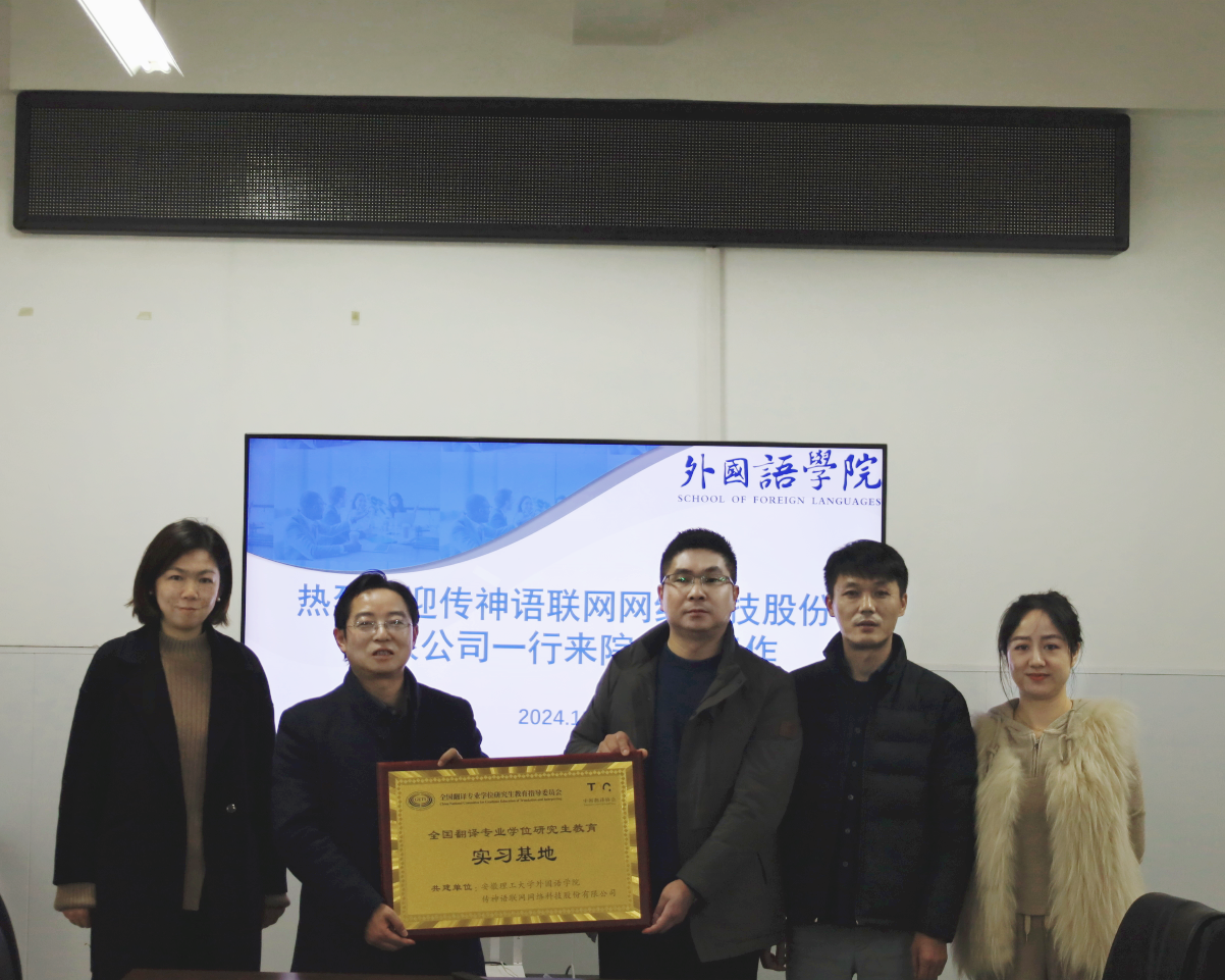 近日,全国翻译专业教指委、中国译协公布了全国翻译专业学位研究生教育实习基地认证名单,由学院和传神语联网网络科技股份有限公司联合申报的翻译专业学位研究生教育实习基地顺利获批。