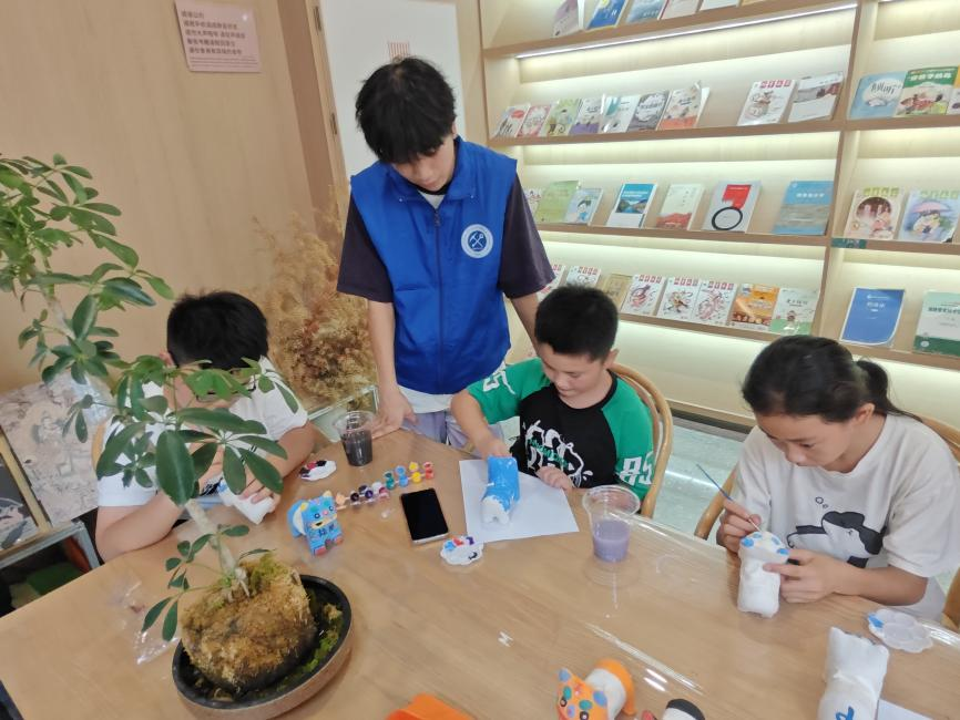 7月3日,实践团队积极将"非遗"文化教育融入实践活动中。活动过程中,队员们帮助小朋友们认识非遗工艺品-“泥老虎”的起源和制作工艺,切实感受我国深厚而丰富的文化底蕴。讲解结束后,现场进行了“泥老虎”的制作,过程中小朋友们热情高涨,创意无限,慢慢打捏,细细雕琢,其乐融融。孩子们通过近距离地接触和学习非遗,在心底逐步建立起了高度的民族自豪感与自信心。