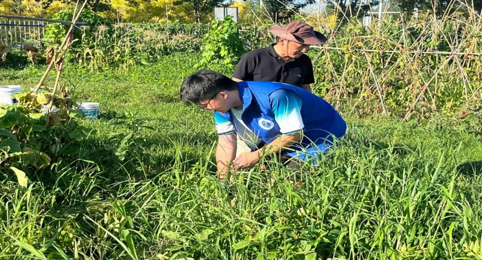 7月10日,队员们戴上草帽、扛起锄头,与村民一同走进田间地头,开展除草、浇水等农事工作。