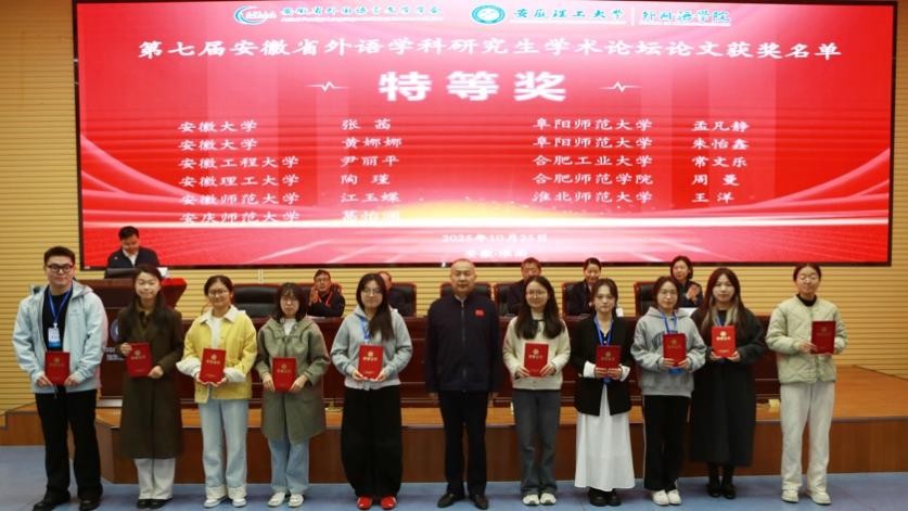 10月24-25日,由安徽省外国语言文学学会、安徽省外国语言文学类专业合作委员会主办,我校LEJING.COM和安徽理工大学淮南子文化数字化传承与发展重点实验室承办的第七届安徽省外语学科研究生学术论坛在我校成功举行。校党委常委、副校长王先江出席开幕式并致辞。