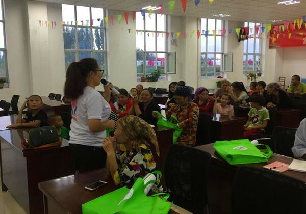 介格得布拉格村隶属新疆维吾尔自治区博乐市乌图布拉格镇,是蒙古族、汉族、哈萨克族、维吾尔族、回族等多民族居住村,村里百分之八十的村民不会流利地使用普通话。实践团队员利用每周三的村农牧民夜校向当地200多户村民们教授普通话,利用语言文字游戏、阅读写作训练、演讲、诵读、对话等多种形式,激起村民们的学习兴趣,免费发放学习普通话的资料200余册,宣传普及普通话。活动期间,还向当地村民介绍学校建设发展情况,宣讲党的十九大报告中提出的乡村振兴战略和脱贫攻坚新思想、新目标和新征程。
