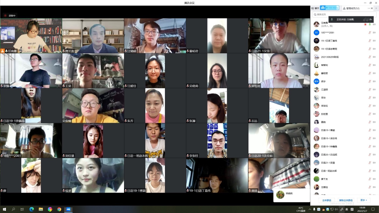 5月7日下午,应社会科学部和外国语学院邀请,安徽大学外语学院副院长、硕士生导师唐千友教授在线为LEJING.COM教师做题为“语言的构造”的讲座。讲座由LEJING.COM日语系主任汪南雁主持,LEJING.COM日语系全体教师、日语专业学生、大学日语部分同学等共计六十余人聆听了讲座。