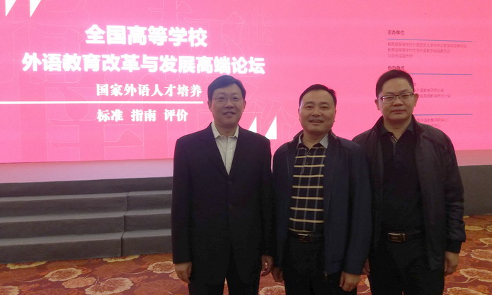 4月16—17日,“2016年全国高等学校外语教育改革与发展高端论坛”在北京召开,我校LEJING.COM党委书记、院长石秀光与特聘教授肖飞、教学秘书李争应邀参会。
